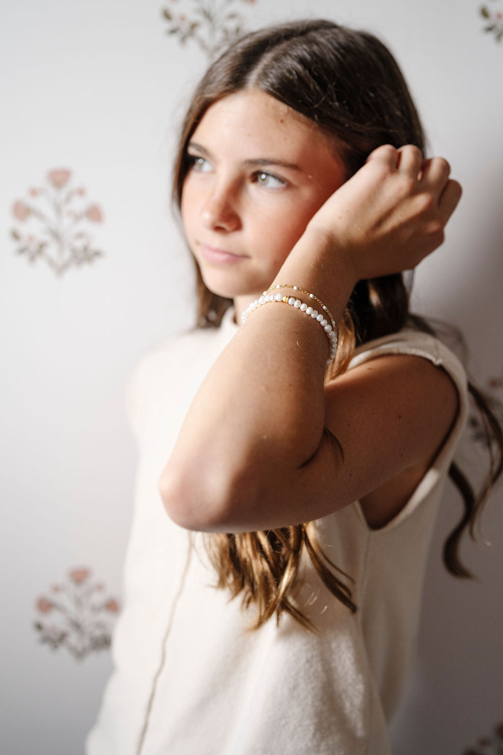 Inspired by the miracle of manna from heaven (described in Exodus 16:4–8), the white enamel beads represent the manna God sent each day and are a reminder of His daily tender mercies. You don’t need to have everything figured out—He already does. Wear this bracelet as a reminder that God still sends mercy with the morning.