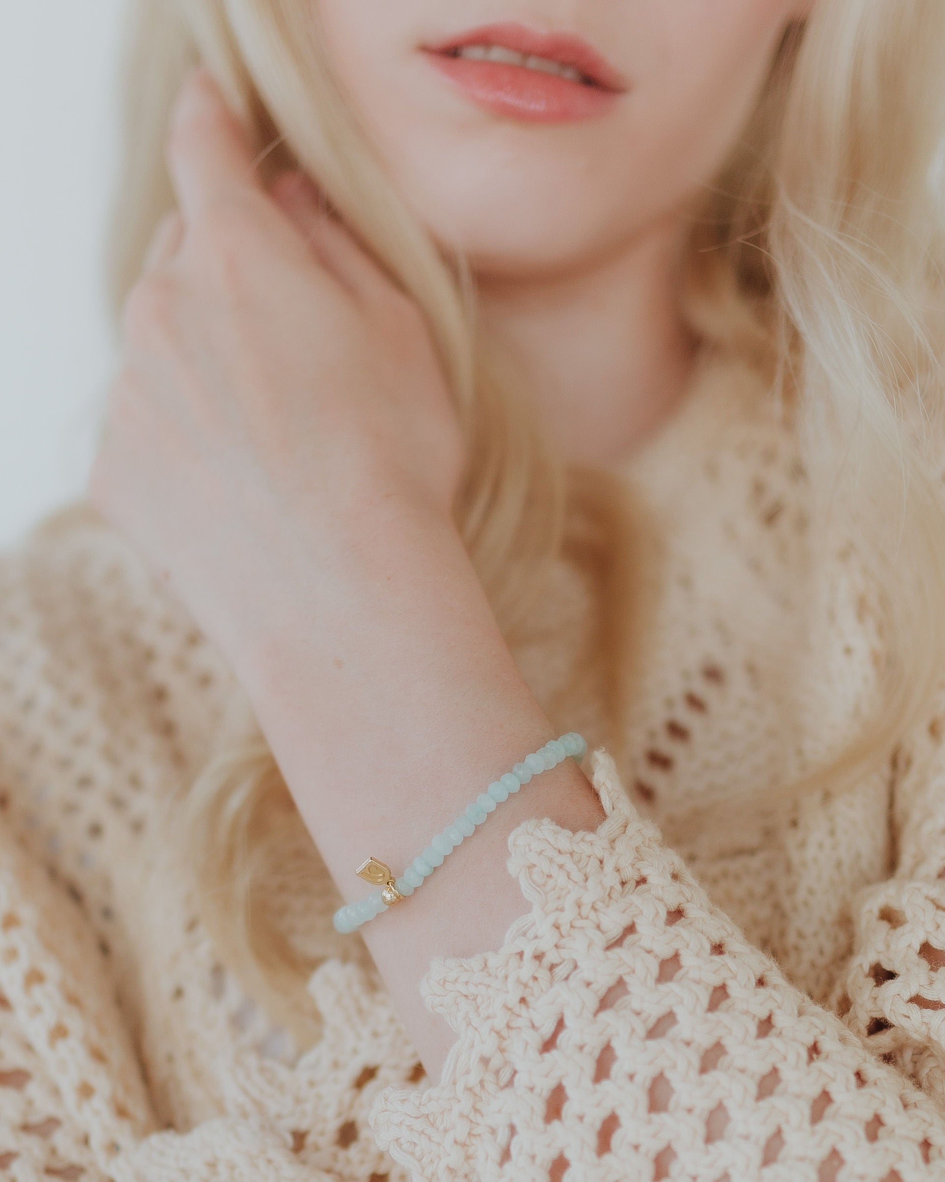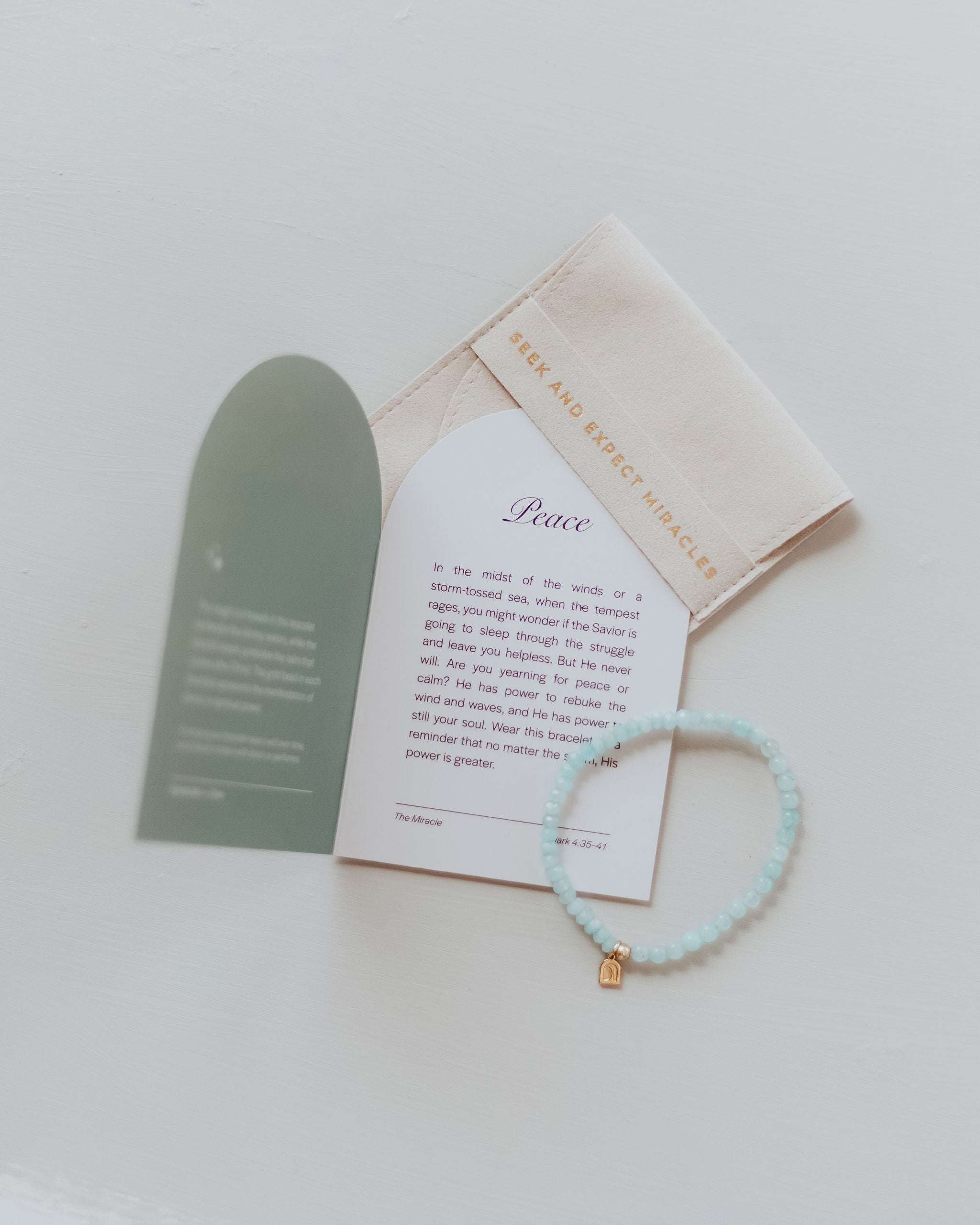 Inspired by the miracle of Christ calming the storm (described in Mark 4:35-41), the rough-cut aquamarine breads in this bracelet symbolize the stormy waters, while the smooth beads symbolize the calm that comes after Christ. No matter the storm you are facing, His power is greater. Wear this bracelet as a reminder that He is a God of peace.